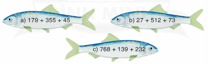 Áp dụng tính chất giao hoán và kết hợp của phép cộng để nhóm các số có tổng là số tròn trăm lại với nhau.