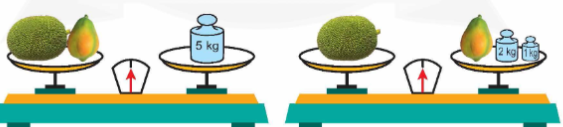 - Tổng cân nặng của quả mít và quả đu đủ là 5 kg