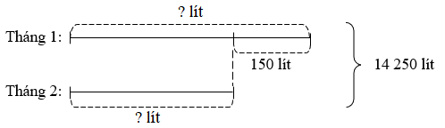 Câu 1. Trong cả tháng 1 và tháng 2, nhà Tùng dùng hết 14 250 $l$ nước. Số lít nước tháng 2 nhà Tùng dùng ít hơn tháng 1 là 150 $l$. Hỏi trong hai tháng đó, mỗi tháng nhà Tùng dùng hết bao nhiêu lít nước?