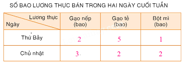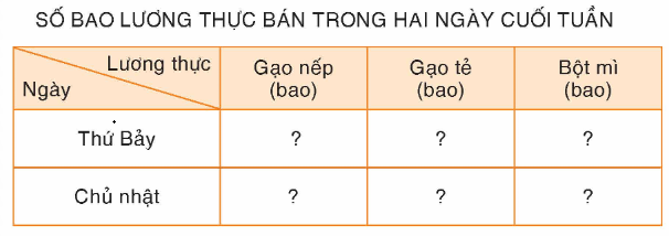 - Ngày thứ Bảy, cửa hàng bán được ....?... kg gạo tẻ, ? kg gạo nếp và ...?.... kg bột mì.