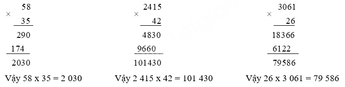 - Thực hiện nhân lần lượt từ phải sang trái