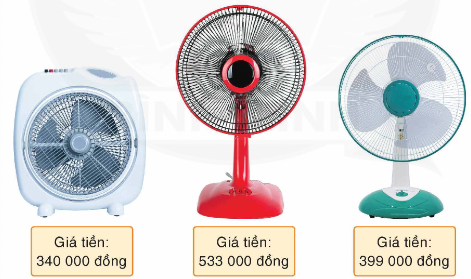 Câu 3. Quan sát tranh rồi cho biết trung bình mỗi cái quạt giá bao nhiêu tiền.