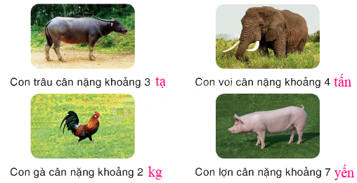 Câu 3. Chọn đơn vị đo thích hợp với khối lượng của mỗi con vật: