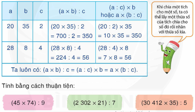 Câu 3. Chia một tích cho một số: