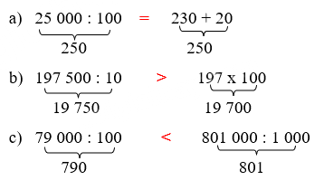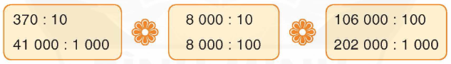 Khi chia một số tròn chục, tròn trăm, tròn nghìn, ... cho 10, 100, 1 000, ... ta chỉ việc bớt đi 1, 2, 3 , ... chữ số 0 ở tận cùng số đó.