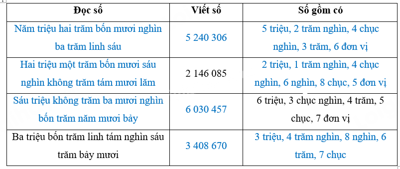 - Dựa vào cách viết số có tới ba chữ số theo từng lớp, lần lượt từ lớp triệu, lớp nghìn, lớp đơn vị