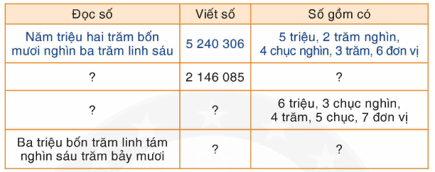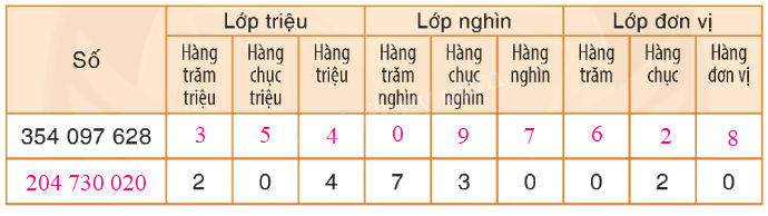 - Xác định hàng của mỗi chữ số rồi điền vào bảng