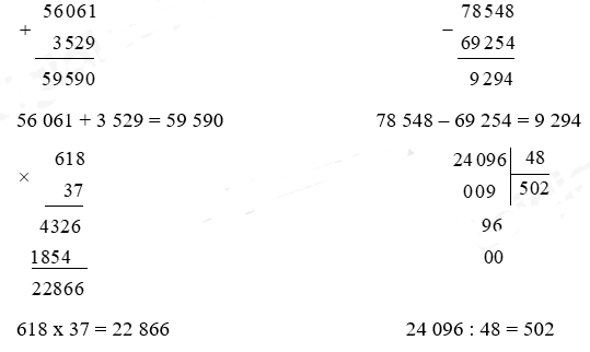 - Đối với phép chia: chia lần lượt từ trái sang phải