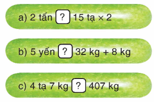 Em điền đơn vị đo khối lượng thích hợp vào ô trống.