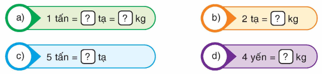 1 yến = 10 kg ; 1 tạ = 100 kg