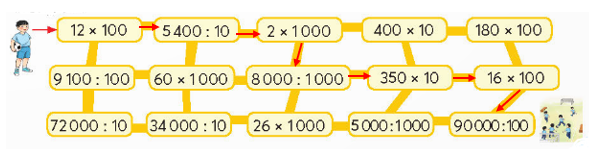 Giúp bạn đi theo các phép tính có kết quả bé hơn 4000 để đến sân bóng đá.