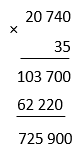 Giá trị của biểu thức 20 740 × 35 là: