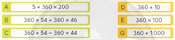 5 × 360 × 200 = 360 × (5 × 200) = 360 × 1 000