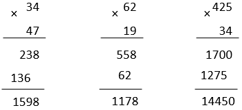 b) 450 × 70 = (45 × 7) × 100 = 31 500