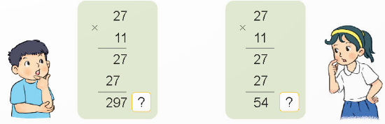 a) Bạn nam đúng, bạn nữ sai vì khi viết tích riêng thứ hai ta phải lùi sang trái một cột (so với tích riêng thứ nhất).