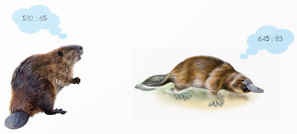 Để tìm hiểu, em hãy ước lượng các thương dưới đây. Nếu thương là 7, con vật đó đẻ ra trứng. Nếu thương là 8, con vật đó đẻ ra con.