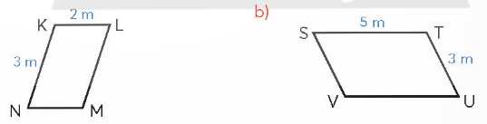 Nêu các cặp cạnh đối diện song song và bằng nhau của mỗi hình bình hành dưới đây. Nêu số đo các cạnh của hình bình hành.