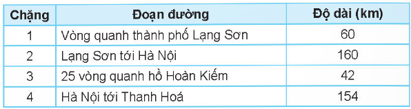 Trong một giải đua xe đạp xuyên Việt, lộ trình một số chặng đua được cho như bảng dưới đây: