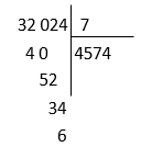 Vậy 32 024 : 7 = 4574 (dư 6) |