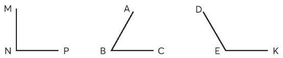 Đo các góc dưới đây bằng thước đo góc rồi nêu số đo mỗi góc.