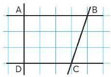 Trong hình vẽ bên, tứ giác ABCD có: a) 2 góc vuông và 2 góc nhọn. b) Hai cạnh AB và DC cùng vuông góc với cạnh AD. c) Cạnh AB song song với cạnh DC. d) Cạnh AD song song với cạnh BC. |