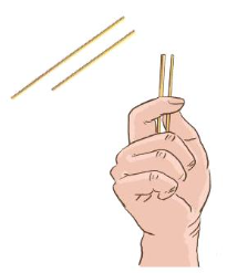 Các bạn luân phiên cầm que (xem hình), các bạn còn lại đoán xem que nào dài hơn.