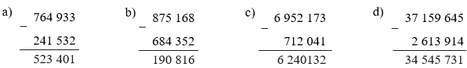 Toán lớp 4 trang 9, 10 Bài 41: Phép trừ các số tự nhiên Chân trời sáng tạo