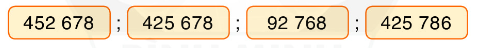 a) Các số viết theo thứ tự từ bé đến lớn là: 92 768; 425 678; 425 786; 452 678.