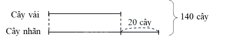 Câu 2: Trong vườn trồng 140 cây nhãn và một số cây vải, số cây nhãn nhiều hơn số cây vải 20 cây. Tính tỉ số phần trăm của số cây vải và số cây nhãn.