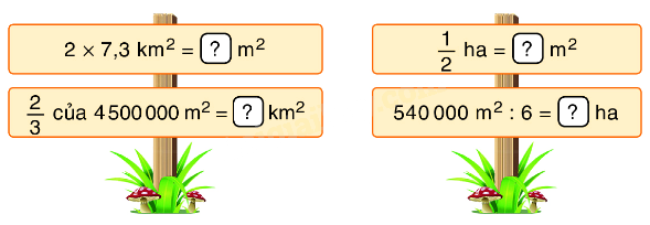 Dựa vào mối quan hệ: 1 km2 = 1 000 000 m2; 1 ha = 10 000 m2; 1 km2 = 100 ha; 1 ha =