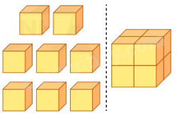 - Thể tích hình lập phương lớn = thể tích của hình lập phương nhỏ × 8