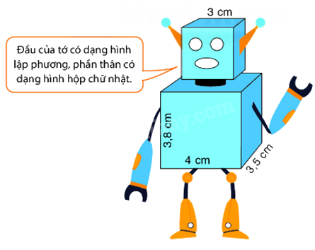 Tính diện tích phần bìa để làm đầu và thân con rô-bốt đó.