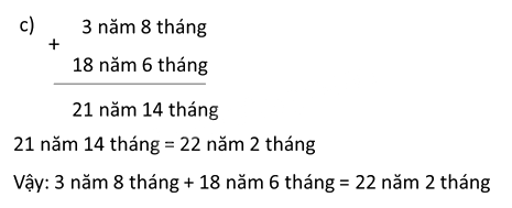 c) 3 năm 8 tháng + 18 năm 6 tháng