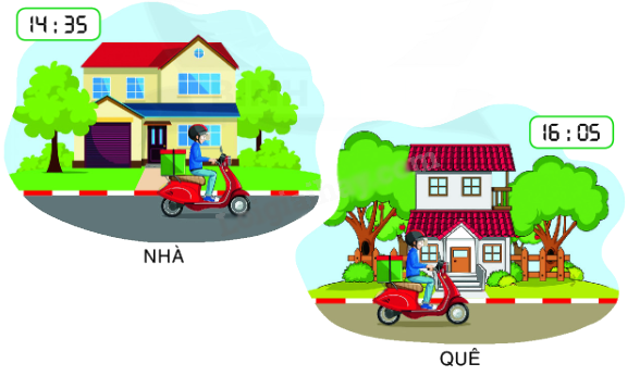Câu 3. Chú Long đi xe máy từ nhà về quê. Quan sát tranh rồi nêu số đo thời gian thích hợp thay cho ?