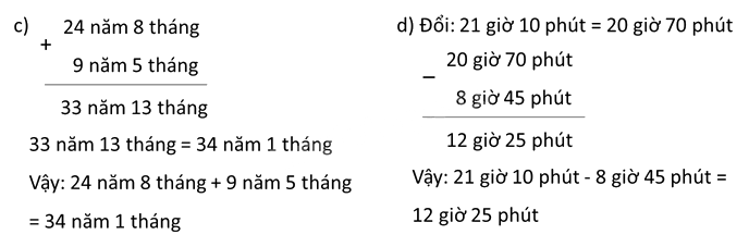 c) 24 năm 8 tháng + 9 năm 5 tháng