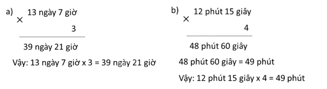 a) 3 giờ 21 phút × 4 = 12 giờ 84 phút
