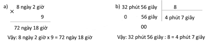 Vậy 32 ngày 10 giờ : 2 > 5 ngày 9 giờ × 3.