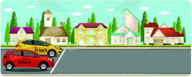 Vì 60 km/h > 55 km/h nên xe màu đỏ đi nhanh hơn xe màu vàng.