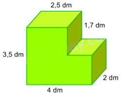 \(2,5 \times 2 \times 1,7 = 8,5\)(dm3)