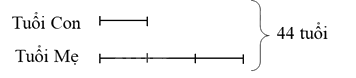 Câu 5. Năm nay tổng của tuổi mẹ và tuổi con là 44 tuổi. Biết rằng tuổi con bằng tuổi mẹ. Vậy: