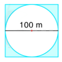 Người ta mở rộng hồ nước hình tròn thành hồ nước hình vuông nên độ dài cạnh hình vuông bằng độ dài đường kính hình tròn và bằng 100 m.