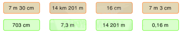 Câu 3. Chọn mỗi số đo ở hàng trên với số đo bằng nó ở hàng dưới: