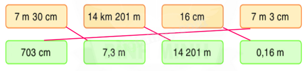 Chọn mỗi số đo ở hàng trên với số đo bằng nó ở hàng dưới: