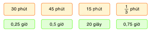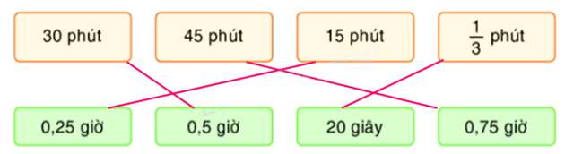 Chọn mỗi số đo thời gian ở dòng trên với một số đo thời gian bằng nó ở dòng dưới.