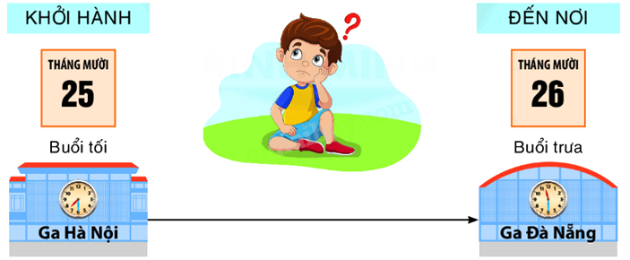 Quan sát tranh nêu thời gian khởi hành và thời gian đến nơi.