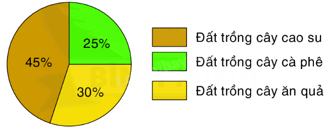Câu 4. Diện tích đất trồng của một trang trại là 210 ha. Tỉ lệ diện tích đất trồng các loại cây được biểu thị bằng biểu đồ dưới đây: