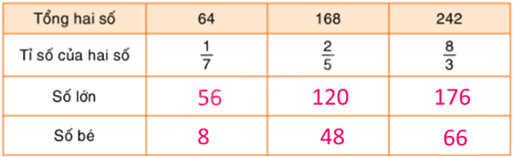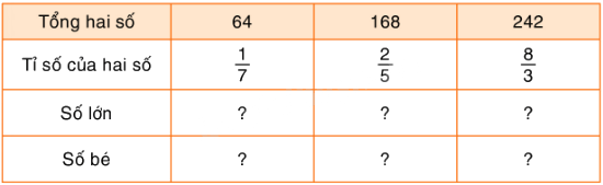Tìm hai số theo bài toán tìm hai số khi biết tổng và tỉ số của hai số đó.