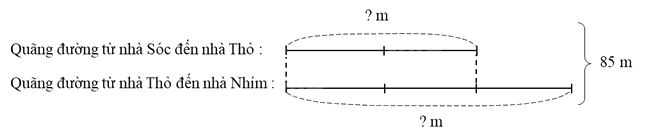 Câu 3. Sóc đi từ nhà mình ra nhà Thỏ rồi đi đến nhà Nhím, quãng đường Sóc đi tất cả là 85 m. Biết quãng đường từ nhà Sóc đến nhà Thỏ bằng