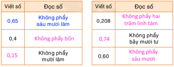 - Dựa vào cách đọc, viết số thập phân theo mẫu.