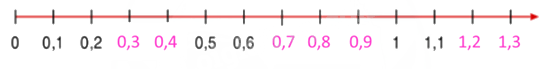 - Quan sát hình vẽ để viết số thập phân thích hợp với mỗi vạch.
